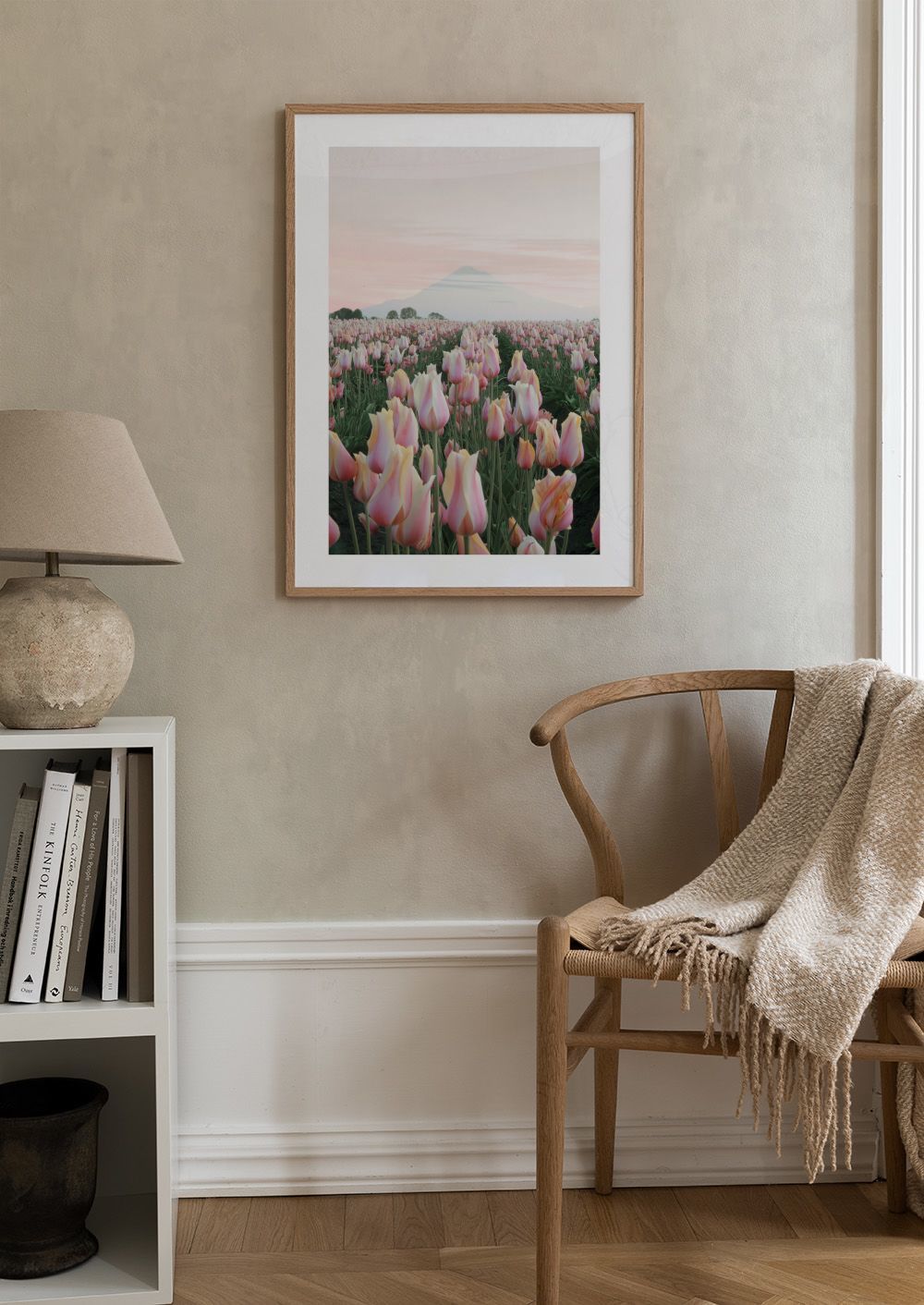 From €15.02A beautiful poster of a pink and yellow tulip field with a mountain in the background. Create a calm and peaceful feel in your home with this lovely print.